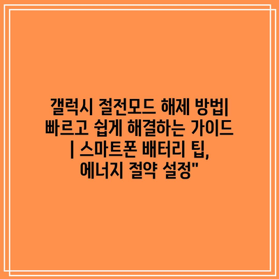 갤럭시 절전모드 해제 방법| 빠르고 쉽게 해결하는 가이드 | 스마트폰 배터리 팁, 에너지 절약 설정