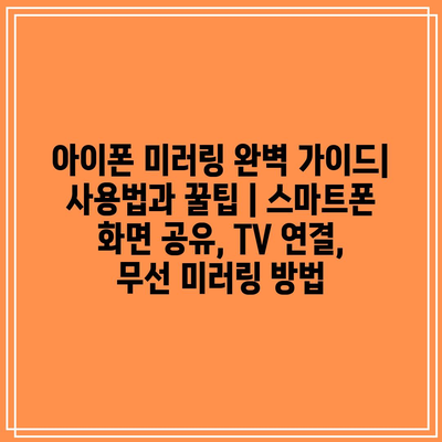 아이폰 미러링 완벽 가이드| 사용법과 꿀팁 | 스마트폰 화면 공유, TV 연결, 무선 미러링 방법으로 여러분의 일상을 더 편리하고 즐겁게 만들어 보세요.