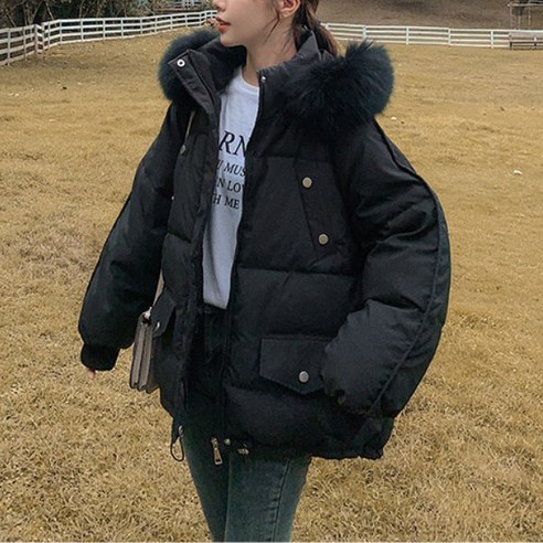 90% 화이트 오리털 폭스퍼 빅 퍼 칼라 패딩 코트